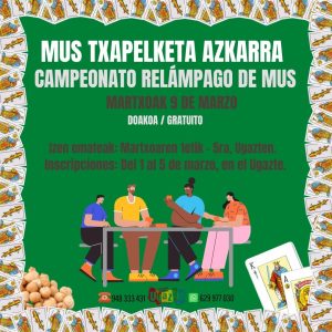 Sábado 9 de marzo, de 17:30 a 21:30 h. ¡¡Gratis!! Inscripciones: del 1 al 5 de abril, en el Ugazte.