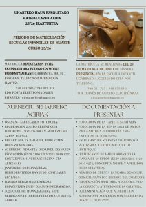 La matrícula se realizará del 29 de mayo al 4 de junio de manera presencial en la escuela infantil Ugarrandia,