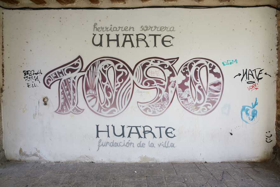Siglo XVIIIHuarte contaba a principios del siglo XIX con unos 550 habitantes, de habla vasca en su totalidad. El pueblo se componía de tres barrios, Plazaldea, Portalaldea y Ugalaldea, que confluían en una plazuela. Al oeste del casco urbano se situaba un prado de unos 90.000 metros, que servía de eras, de pastos para el ganado en invierno y de esparcimiento. Al sur se hallaban los viñedos, que servían para la elaboración de un excelente txakoli. Todo el arbolado desapareció a causa de las guerras napoleónicas y carlistas.