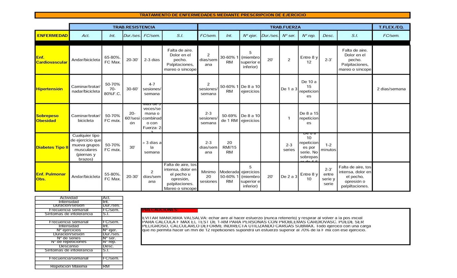 - Se realizarán sesiones de fuerza y resistencia especialmente prescritas para la mejora de la salud del paciente.