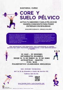 Klase honen helburua, eguneroko jardueretan sabelaldeko eta zoru pelbikoko muskulaturaz jabetzen, aktibatzen eta integratzen ikastea da. Horretarako zoru pelbikoan espezializatutako bi fisioterapeutek ariketak gidatuko dituzte.