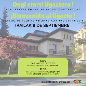 Eta horretaz gain, irailaren 8an, 17:00etan, Ugaztera etortzen diren edo etortzen hasiko diren gazteen guraso eta tutore legalak, Ugazten egiten duguna ezagutzera etor zaitezkete!