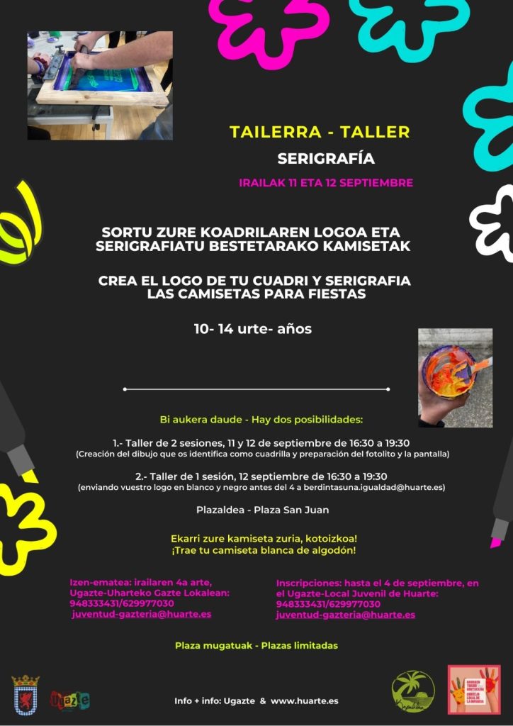 Inscripciones: hasta el 4 de septiembre, en el Ugazte-Local Juvenil de Huarte: 948333431/629977030 juventud-gazteria@huarte.es