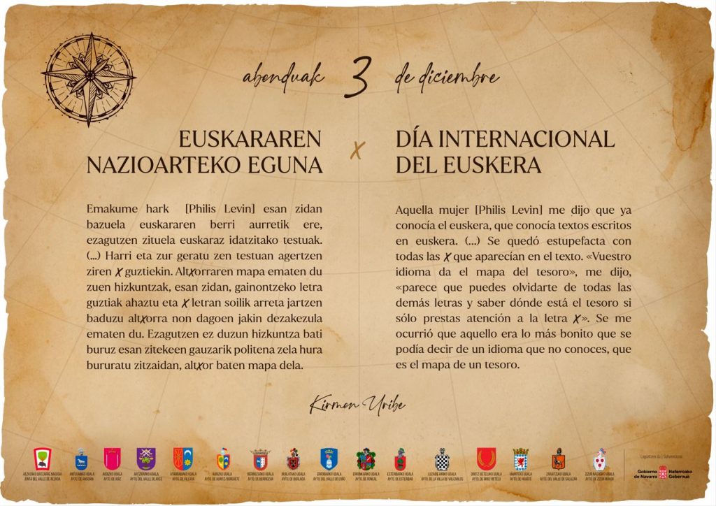 En la antesala del Día Internacional del Euskera, este ayuntamiento quiere manifestar su adhesión a dicha celebración. Y es que el euskera es una característica destacada de nuestro municipio. No obstante, y como lengua minoritaria que es, necesita el apoyo de nuestras instituciones.