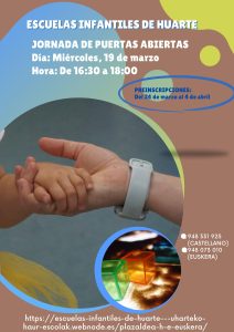 En el caso de que así lo solicite la familia, la escuela podrá prestar su colaboración para tramitar la solicitud. Para ello habrá que pedir cita previa al teléfono a partir del 11 de marzo, por teléfono o e-mail: 948 331 925 / 948 073 010 / eihuartehe@huarte.es