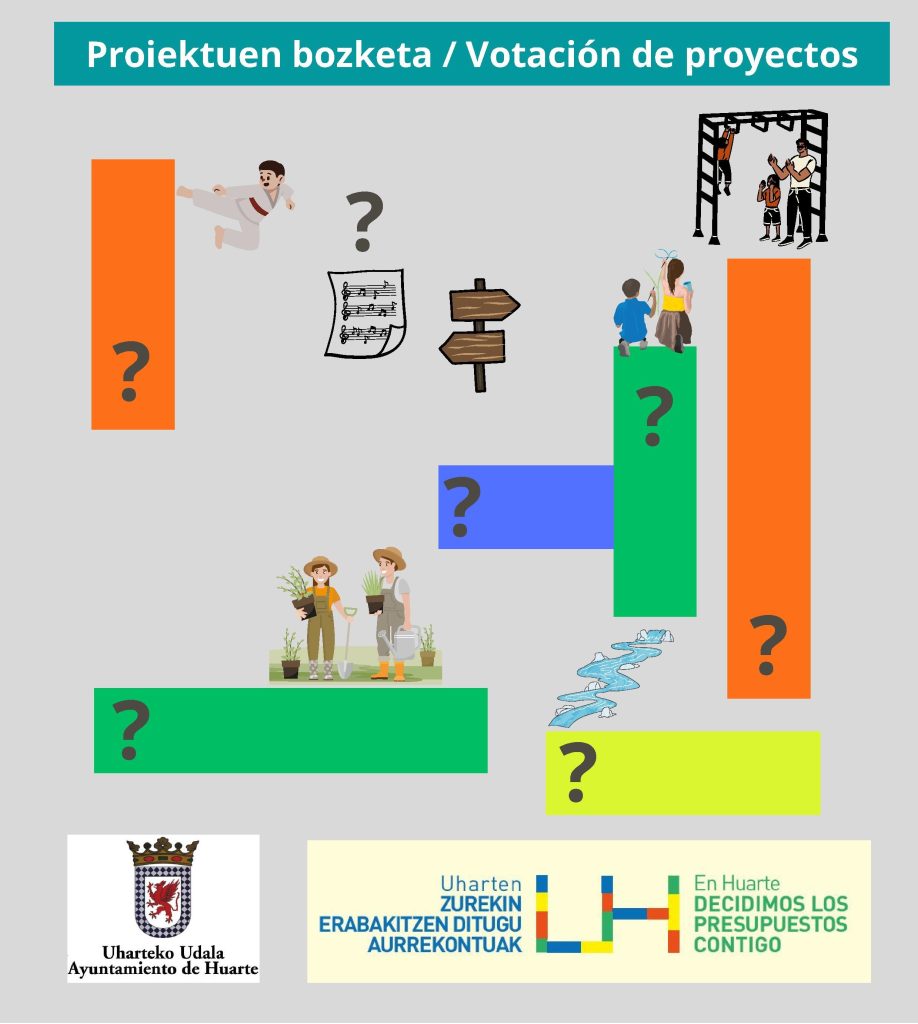 El presupuesto participativo de Uharte para el año 2023 está dotado con una partida de 60.000 € para proyectos grandes y otra de 15.000€ para pequeños proyectos. Es por ello que en la fase de votación cada persona podrá votar a 1 único proyecto de cada partida, es decir, a 1 de proyectos grandes y 1 de proyectos pequeños.