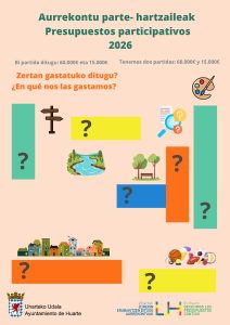 A partir del 2 de febrero, y hasta el 13 de abril, las personas mayores de 16 años y empadronadas en Huarte y las asociaciones y colectivos de la localidad pueden presentar sus proyectos a los presupuestos participativos de este año.
