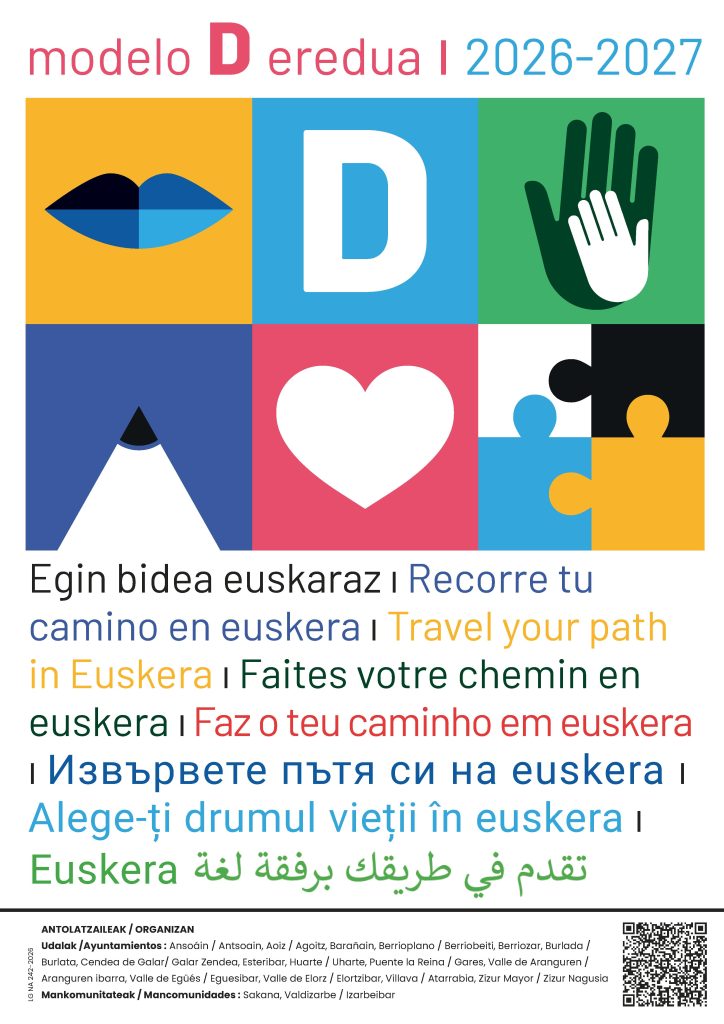 En los próximos días comenzará la campaña a favor del modelo D que realizan en conjunto varias entidades locales de Navarra. La campaña pretende trasladar a las familias información sobre el modelo D y sus beneficios a través de diferentes soportes. Para ello, se han preparado carteles que se difundirán en diferentes municipios y que llevarán a través de un código QR a una página web informativa. La campaña se difundirá también en formato digital a través de los diferentes canales de comunicación municipales.
